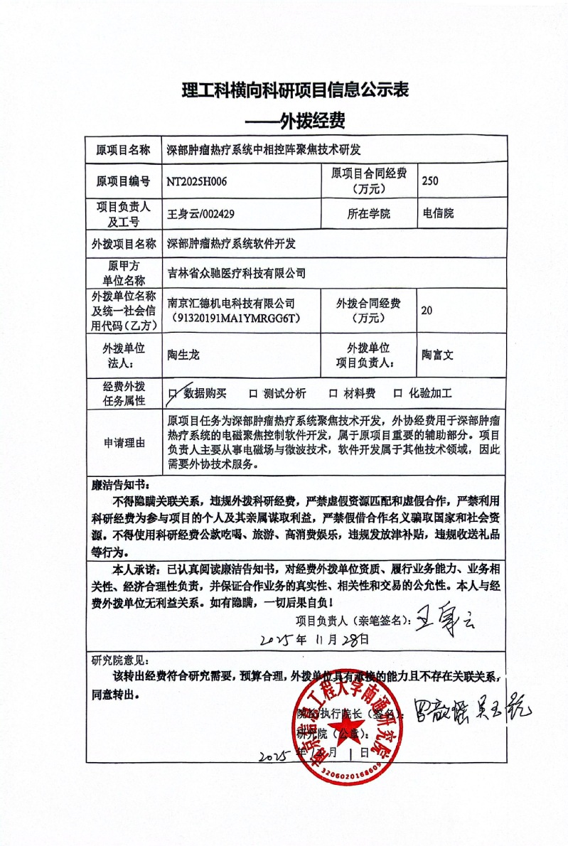 根据南京信息工程大学科研项目外拨经费管理要求,理工类横向项目外拨须进行公示,公示期5个工作日。现对我院拟外拨横向项目有关事项公示如下: